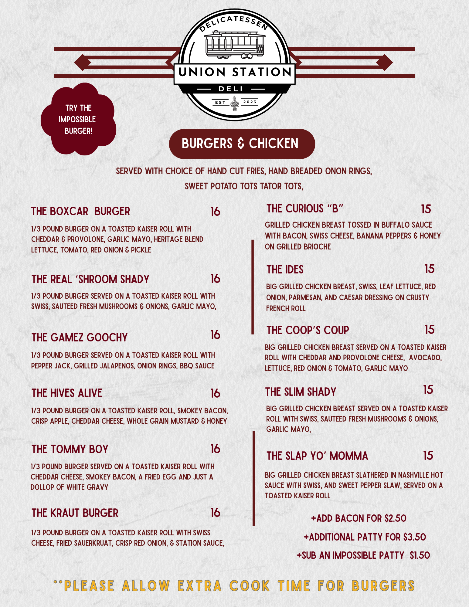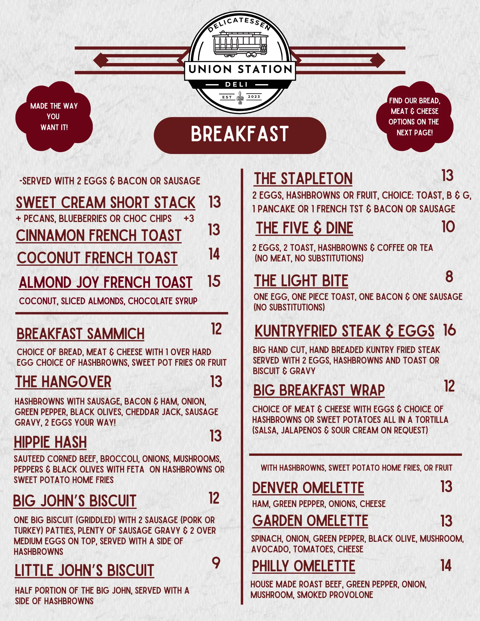 At Union Station Deli, we take pride in every plate. Our menu is brimming with comforting favorites.